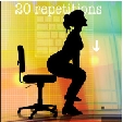幻椅式:做这个动作时,椅子越低,效果越好。站在椅子前,双脚间距与臀同宽。双手放在臀部,慢慢下蹲到臀部刚好在椅子上方。然后尽可能慢地坐下来。重复20次。