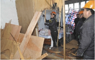 记者在现场注意到,同样位于三圣门路的另外3户隐患出租房房东显然更为主动,房东们请来建筑工人,拆掉了各自原先的木楼梯,改砌成水泥楼梯,并将木隔断换成了砖结构的安全隔断。