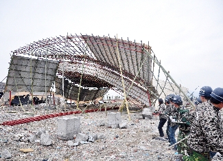 近日,汀田街道荣里村一居民向本报反映,该村位于中塘河东侧和汀十村相连接的部分农地上,前段时间有人私设围栏打算搭建违章建筑,而旁边汀十村的地面上已经搭起了棚架。前日,记者到现场查看后并将此情况反映给市国土资源局汀田管理所。据该所工作人员介绍,这块土地近年来先是被人乱堆渣土,之后又多次出现违建,汀田管理所在半个月前已拆过一次,没想到又死灰复燃。昨日,汀田街道展开多部门联合执法行动,将此处违建一举拆除。