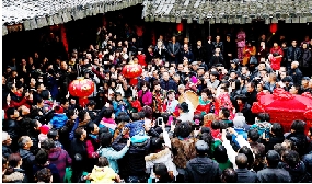1月29日,永嘉上塘举办“楠溪婚礼定位”活动。鸣锣开道、童男童女背高灯、抬花轿等传统迎亲方式吸引众多市民前来观赏。婚礼定位包括迎亲定位、婚礼定位、酒宴定位。