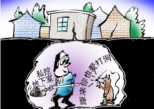 徐州人大代表在北京自己的院子里挖18米深地下室,致道路塌陷。网友纷纷调侃:“18米,相当于在地下掏出个五层楼。” (陶小莫 画)