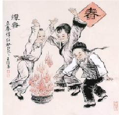 立春日,瑞安家家户户准备“春柴”“燂春”。所谓“春柴”,是预先备好的干燥樟树枝叶,下放一些引火稻草。立春时刻一到,人们便一边放鞭炮,一边捧着盛有燎烧着樟树枝叶的容器,从外到里依次至各个房间,像接力赛似的。这种“燂春”的方法,年代已久,可以助阳气,除阴湿,除浊气。