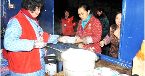 早在前一天,爱心粥铺的志愿者就已经忙开了。“因为下粥的小菜差不多用完了,我们就到东山那边买了些。”