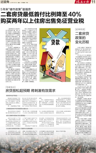 二套房贷最低首付比例降至40%