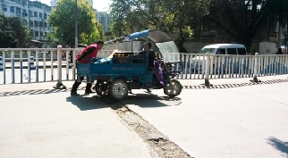 随后,市民监督员又来到农贸市场附近的隆山东路1号桥,发现长达10余米的桥梁减速带已经出现了5公分左右的坑洞,不少螺帽裸露在外,过往车辆均是缓慢通过。就在记者采访过程中,一电动三轮车的两只后轮被陷入坑洞中,驾驶员尝试发动车子却不能动弹,只能下车推,好不容易推出坑洞,不料左后轮又陷入了坑洞。在市民监督员的帮助下,驾驶员才得以重新上路行驶。