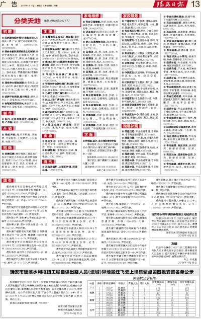 瑞安市珊溪水利枢纽工程自谋出路人员(进城)异地搬迁飞云上埠集聚点第四批安置名单公示