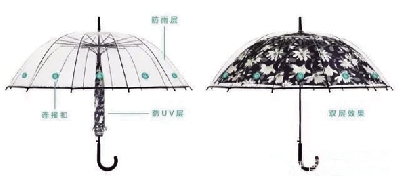 普通的雨伞只能用来抵御雨天的风雨,在晴天却起不到防紫外线的作用。但若不论晴天雨天都使用遮阳伞,其使用寿命就会大大减短。因此,人们往往需要在不同的天气使用不同的伞,相当麻烦!