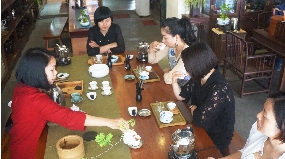 本报讯(见习记者 林翔翔)“品茶时可先呷一小口,在口中展开,闭目慢慢地感受茶的味道……”优雅的环境,精致的茶具,将杯端至鼻下轻吸,一抹淡淡的茶香缓缓入鼻……日前,塘下茗门茶业举办茶道免费培训班,为广大爱茶人士提供学习、交流平台。该茶业老板谢云春介绍,茶道免费培训班开课时间为每周三、四、五的13时至14时,每次接受培训的人数为三至四人,每人共上6节课。培训的内容有如何识别茶叶、茶具,如何品茶,了解茶道文化等。“我喜欢喝茶,但是不懂品茶。茶道培训班让我结识了许多志同道合的朋友,也对茶道有了深入的了解。”参加培训的张女士说。