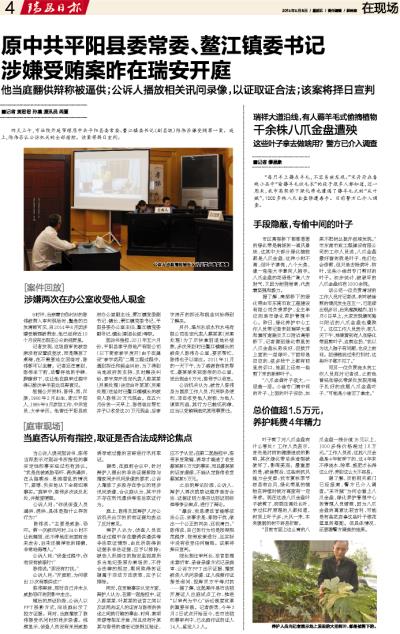涉嫌受贿案昨在瑞安开庭