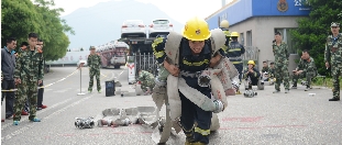 此次比赛分两批(合同制、现役中队组),共设5000米、3000米、1500米、100米徒手跑,佩戴空气呼吸器100米跑,单杠引体向上,10层楼负重登高,爬绳,4×400米负重接力跑,300米水带铺设,灭火救援预案(电子版)制作等项目。