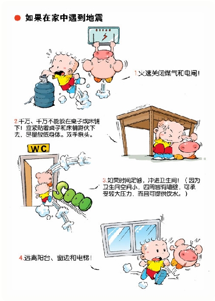 地震到来时,如果您的厨房里正在烧水或者煮饭,千万要记住在第一时间关闭明火和电源。