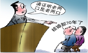 继“证明你妈是你妈”之后,“奇葩证明”再度引起关注,一对90多岁的老夫妇在新中国成立前结婚,近日去补办相关手续时被要求证明“老两口是老两口”。 (陶小莫 画)