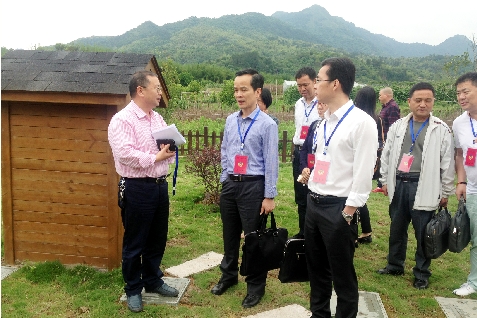 林黎明(左一)向政协委员介绍农村生活污水治理工程