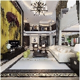 中式装饰材料以木质为主,多采用高档硬木,经过工艺大师的精雕细刻,每件作品都有一段精彩的故事。而套间方面,根据功能划分,一层为以休闲、娱乐及储藏为主,设有视听室、茶室、书房兼客房、储藏室等功能性房间。在偌大的居住空间,楼梯为连通楼层,拉近楼层间的距离感,发挥关键作用。客厅、餐厅、厨房及储藏间采用开放式风格,使原本局促的餐厅变得开阔。餐厅圆型拱洞屏风,很好地保护了就餐区的私密性,又不失装饰上的亮点。中式的吊灯,从6米高的中空落下,错落有致,疏落的光影,投在地毯上、古陶瓷上、墙面的挂画上。二层为次卧与主卧套房。