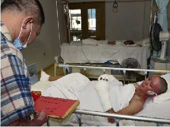 为了不影响王芙蓉和其母亲的治疗,昨日,记者采访了恢复较好的黄献。黄献首次向记者透露了治疗过程中的细节,同时也想通过本报向所有关心和帮助他们一家人的爱心人士说声“谢谢”。
