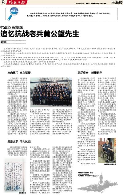 追忆抗战老兵黄公望先生