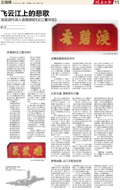 浅说清代诗人余国鼎的《云江覆舟叹》