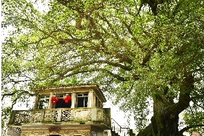 在“马颈”部位,有一株600多年树龄的古榕树,散开的枝叶犹如马鬃。记者随该村老支书董则树来到古榕树下,只见古榕树枝繁叶茂,朝一旁的驹河生长。在古榕树上,有一个直径约30厘米的树洞。董则树说,这个树洞曾经长了一株万年松,“在我小的时候,村民们在榕树下围坐乘凉、谈天说地,调皮的小孩则爬上万年松玩耍”。