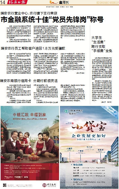 瑞安农行员工帮助客户追回1.8万元受骗款