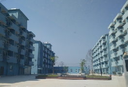 这是4幢蓝色房子,位于莘塍工业区东二路附近,两幢5层,两幢6层,外表整洁大气,很是吸引眼球。总占地面积15亩,2楼以上(含)共有396间,每间28平方米,可满足1000余名租房人员的居住需求。