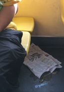昨日上午,网友@小明在市区至湖岭的108路公交车上,竟然拍摄到一座椅下边有一堆用报纸铺盖着大便。“好恶心啊,公交车上竟然有大便,已有好几个不知情人踩踏在报纸上,粪便向外溅开,也使得那几个乘客连着鞋底粘满了粪便,有的乘客纷纷下车离开。直到数分钟后,公交车售票员在了解情况后,才对粪便清理干净。”