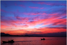 此时,你不妨在夕阳如画日落时分,大约在傍晚6时半至7时半,到滨江大道上看夕阳,那个感觉是真好,温馨、美丽、浪漫全有了,彩霞满天的迷人景色都一样让人震憾,简直美哭了。