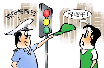8月深圳交警重招整治违法通行,闯红灯的行人被要求戴绿帽子、穿绿马甲在路口劝导其他路人。此举引发热议,网友有赞有弹,交警称帽子仅是与马甲的同色搭配,并无他意。 (陶小莫 画)