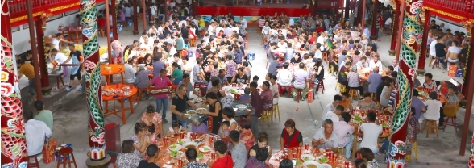60岁的黄国亮来自马屿曹村,虽然他不认识河溪村村民,但从小时候起,几乎每年都会来参加河溪村的庙会。“在文化礼堂里摆酒席,我们是第一次参加。这么漂亮的文化礼堂,真让人大开眼界。”黄国亮说,前来吃饭的游客也感觉盛情难却,大家你10元、我20元地出钱,交给村里,表示一番自己的心意。据了解,当天文化礼堂里共摆了110桌素宴,其中90桌的客人都是前来赶庙会的游客。