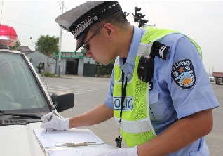 高温下,交警每天传播“正能量”