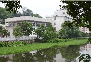 餐厅后还有一幢木结构的两层楼房,上下共四个房间,有中堂,中堂前两边有厢房,那时曾作教工宿舍。说是像寺庙建筑,当时已没有和尚,也不见一尊佛像。传达室工友潘锡友老伯(我们称他阿友伯),就住在楼下后半间。门前有一根又长又粗的紫藤缠绕在山脚一株榆树上,藤龄足有百年。