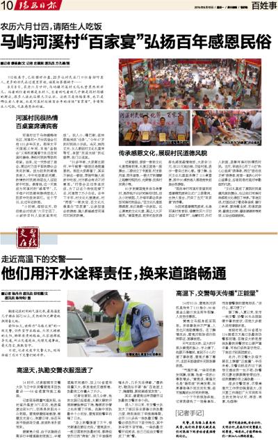 马屿河溪村“百家宴”弘扬百年感恩民俗