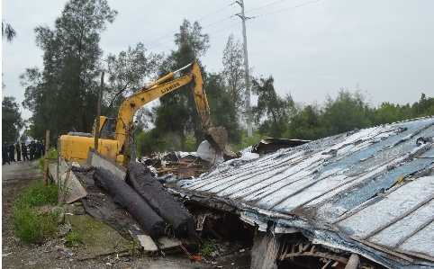 拆除违章养殖场现场