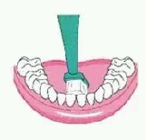 5.刷咬合面时,刷毛指向咬合面,稍用力作前后来回刷。