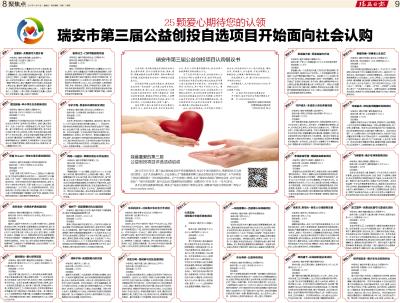瑞安市第三届公益创投自选项目开始面向社会认购