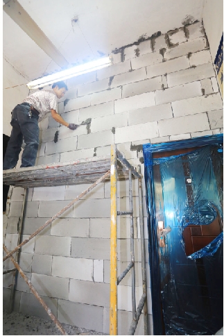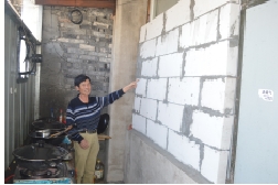 周家桥村村民金先生家一楼前面是店铺,后面用于住宿,前后屋用一道移动木门分隔。13日下午接到整改通知书后,他马上联系泥瓦匠,在前后屋之间砌起一道实体墙。他说:“实体墙砌起来,再安装钢制防火门,我们住得也放心。”