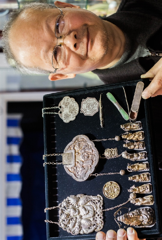12月2日下午,记者在大沙堤王豎华银楼看到,橱柜里很多物件都是出自他的手,都是他的杰作。