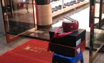 随后,记者来到“蜘蛛王”鞋店前,看到该店门口摆放了一个直径约15cm的鼓,当时并没有店员敲鼓,也没有使用喇叭播放促销广告。