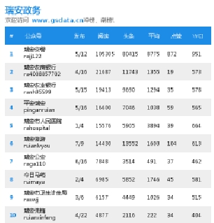 瑞安政务微信排行榜