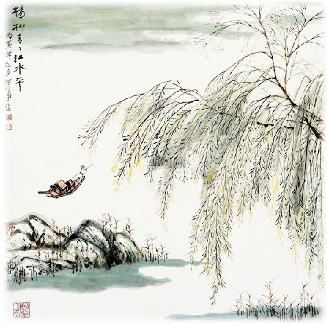 《竹枝词》写的是一位沉浸在初恋中的少女心情。她爱着一个人,可还没有确实知道对方的态度,因此既抱有希望,又含有疑虑;既欢喜,又担忧。其中写道:“杨柳青青江水平,闻郎江上唱歌声。东边日出西边雨,道是无晴却有晴。”