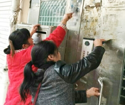 12月20日星期天,驻格干部林冬梅、巢华峰来到周家桥村,和村干部、老协会员、妇女等清理卫生死角和街头小广告。