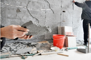 西前村村民林彬彬家也出现了类似情况。记者来到他家,看到一楼一面墙壁凹凸不平,上面都是硬化的水泥,瓷砖已全部拆下。“水泥不仅粘不牢瓷砖,和墙壁也粘不住。”林彬彬说着,摸着墙上的一块水泥,可以轻松地掰下来。记者看到,水泥虽然本身很硬,但结成团块,并没有和墙壁紧紧粘合。但奇怪的是,同时施工、用同一批水泥贴的另外三面墙上的瓷砖却没有掉,看起来一切正常。