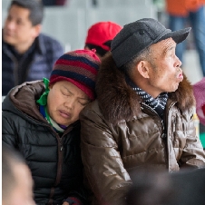 来自贵州的张先生在正抱着儿子玩耍,头靠着头那一瞬间,张先生脸上露出满足、辛福的微笑。