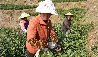 昨日下午,记者在高楼洪地村茶园看到,满山的茶树翠绿欲滴,树上已经冒出了小芽头。三五成群的茶农头戴竹帽身系茶篓分散在茶园中,小心翼翼地采摘开春后茶树长出的嫩芽。洪地村村委会主任李福兵告诉记者,受农历去年年底寒潮影响,茶叶产量较去年有所下降,而采摘期可能需要一个月左右。