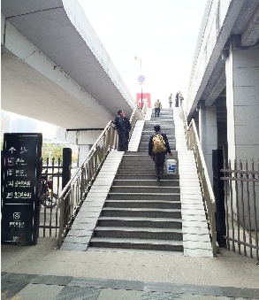 上午9时许,市民监督团来到瑞安火车站,火车站的进出口设在二楼,要进站必须上二楼。但是火车站里的电梯并没有启用,所有进站的旅客均要走步梯到二楼。
