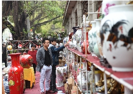 记者发现,一个瓷器摊吸引了不少人,而摊主是一个二十来岁的小姑娘。原来小姑娘是和母亲一起来的,两人来自厦门。平时其母亲在厦门的厂里上班,到了会市开始后才请假过来,摊上的东西都来自厂里。当记者问及怎么想到来海安会市摆摊,小姑娘笑着大声答道:“大会(市)我们才来!”