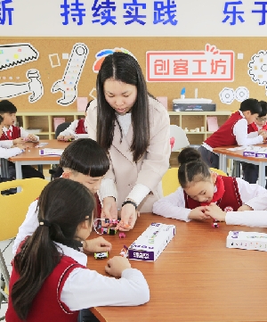 2015年9月,该校花费近20万元,购买了电脑和各类器材,打造了一间近100平方米的工作室,命名为“创客工坊”。本学期初,该校成立创客社团,通过“设计理论+现场动手操作”的形式选拔招募到20名小“创客”,每周五下午在“创客工坊”开展“创客”教育。除此之外,该校还开展各类自主拓展课程及时间拓展课程,该校学生更是在每年科技节小发明、scratch现场编程等比赛中取得优异成绩。浓厚的创新创造氛围,使该校获评首批“温州市青少年创客基地”。