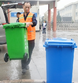 莘塍街道环卫所负责人介绍,用加盖分类垃圾桶替换原先的开放式垃圾桶后,环卫工人定期收走装满垃圾的分类垃圾桶,然后放上清洗干净的空垃圾桶。
