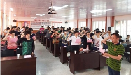 “我志愿加入中国共产党,拥护党的纲领……”5月26日上午,90多名巾帼党员在庄严的党旗下重温入党誓词。她们还认真抄写入党誓词、党章,一笔一划写得格外认真。