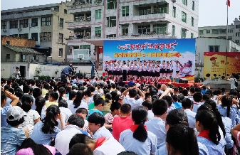 5月31日上午,艳阳高照,莘塍第二小学的操场上一片欢声笑语。慰问小组将一批崭新的书籍捐赠给学校,20名优秀学生还分别收到一套新文具盒、书包。随后,由市新居民服务管理局、禁毒办、新居民艺术团主办,莘塍街道办事处、莘塍第二小学协办的“汇聚欢乐·共筑梦想”慰问演出上演。