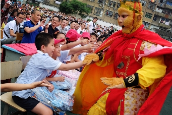 “看这场演出真是太开心了,看到了‘变脸’、美猴王。希望以后学校多一些这样的演出。”张远东来自贵州遵义,是该校四年级学生,也是优秀学生代表。演出结束后,他和同学意犹未尽,舍不得离开操场。